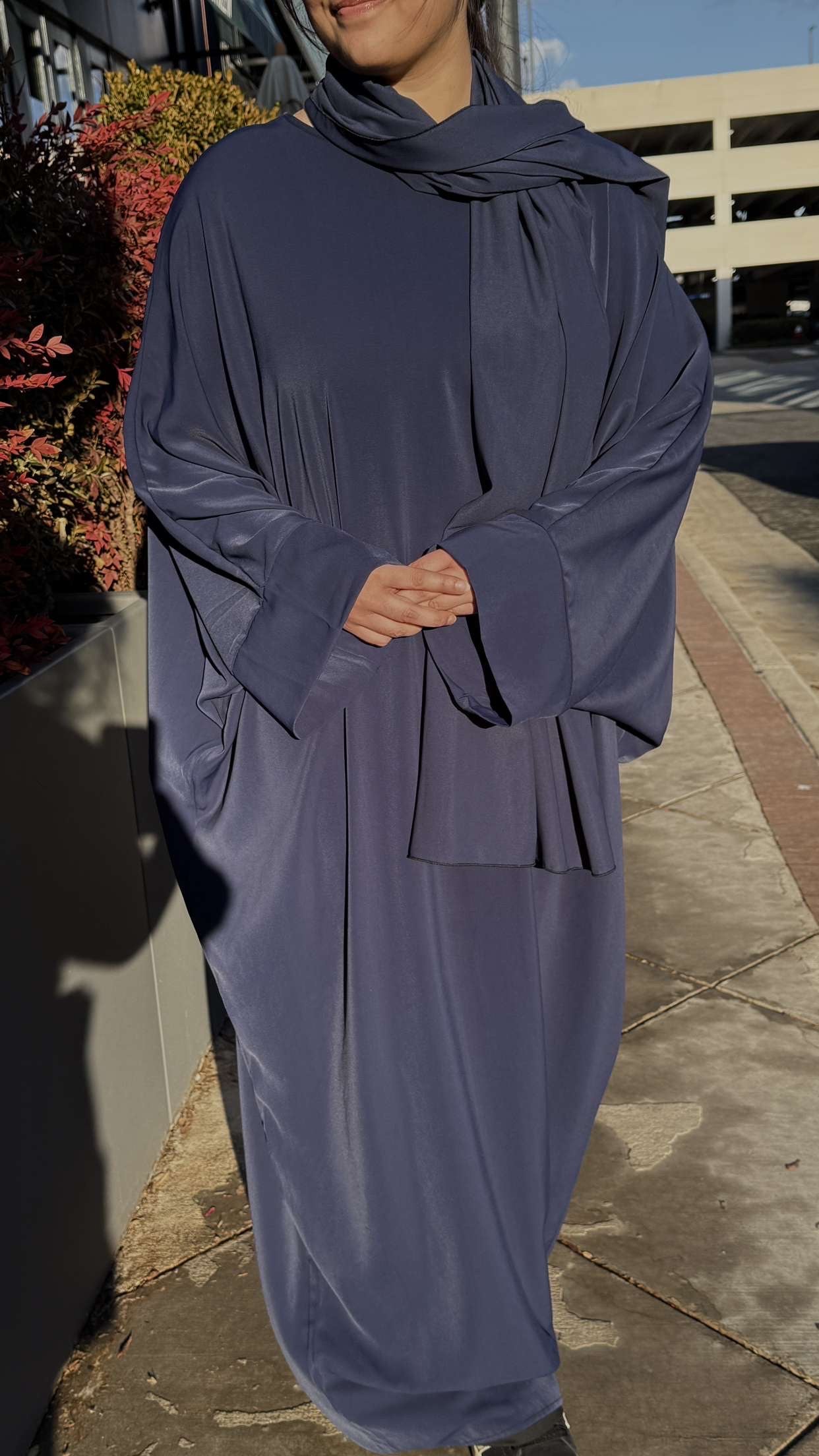 Effortlessly stylish and easy to wear, this navy blue abaya brings comfort and charm to your everyday look. Made with soft, breathable fabric and paired with a matching hijab, it’s perfect for daily outings, coffee dates, or a simple walk under the open sky. A go-to piece that blends modesty with laid-back elegance.